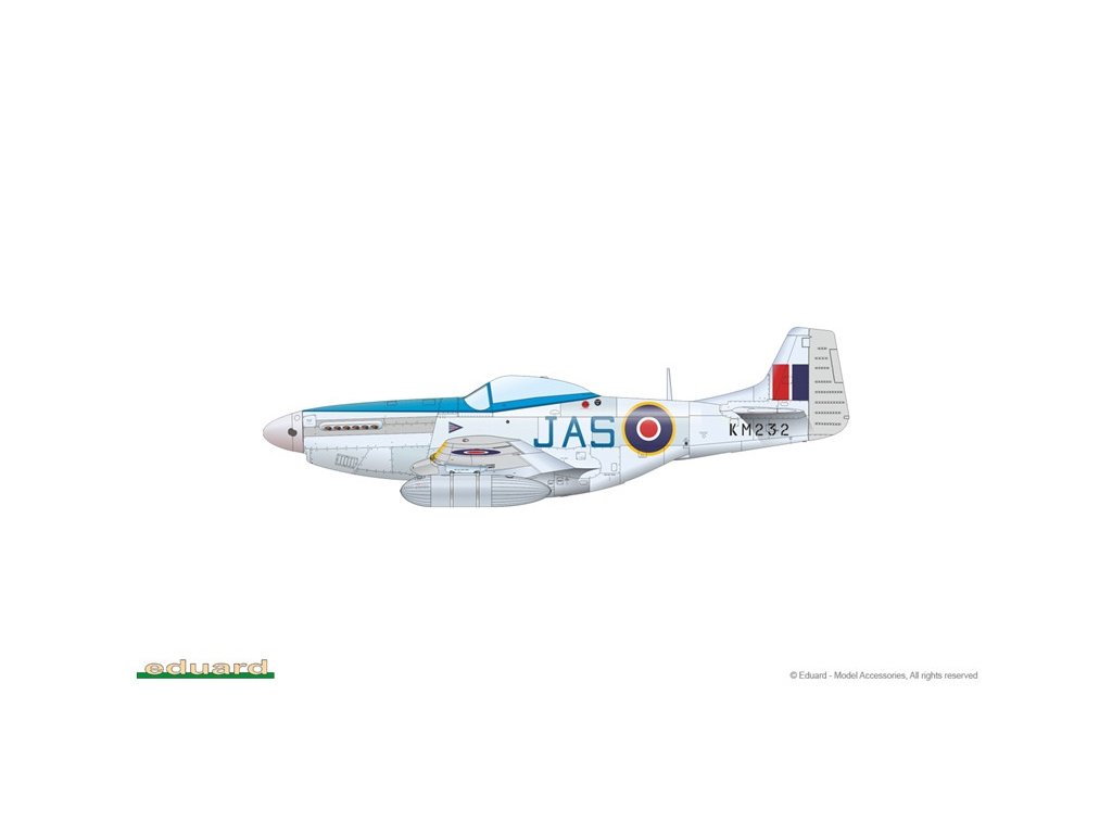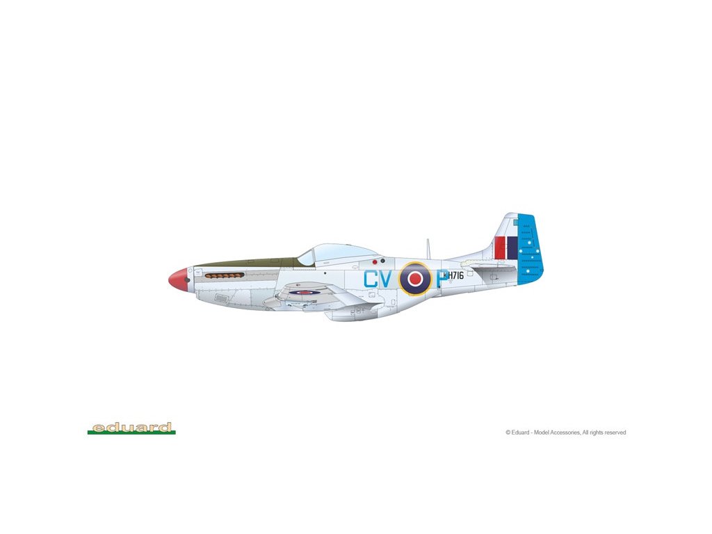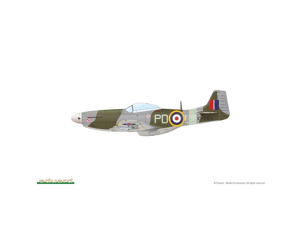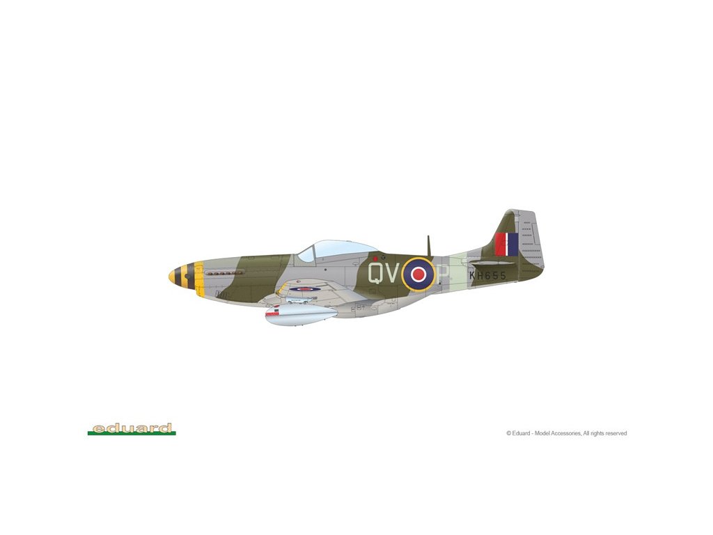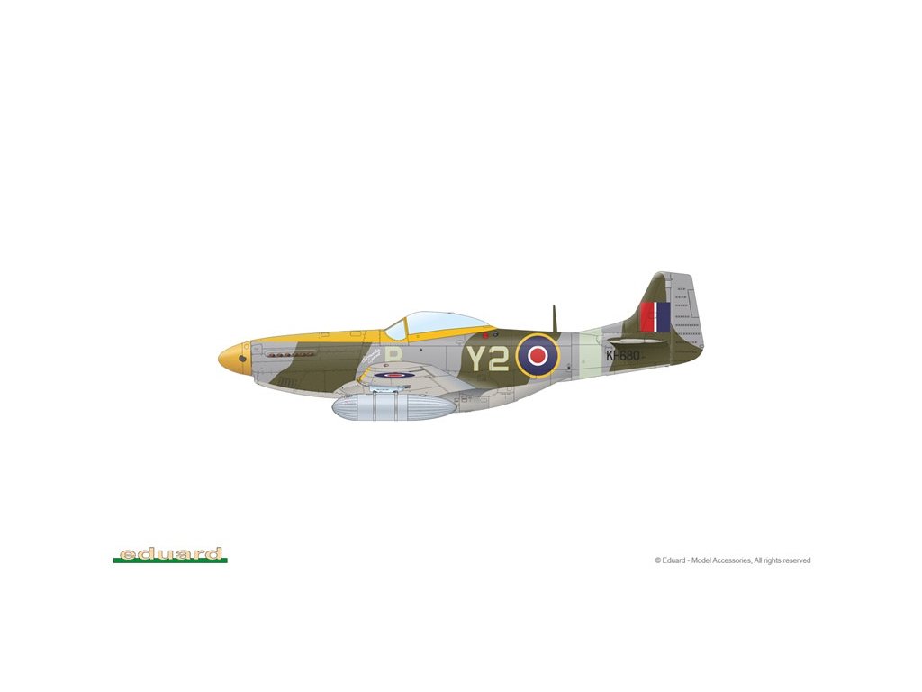 Stavebnice plastikového modelu amerického stíhacího letadla ze 2. světové války, ve verzi používané britskou Royal Air Force.