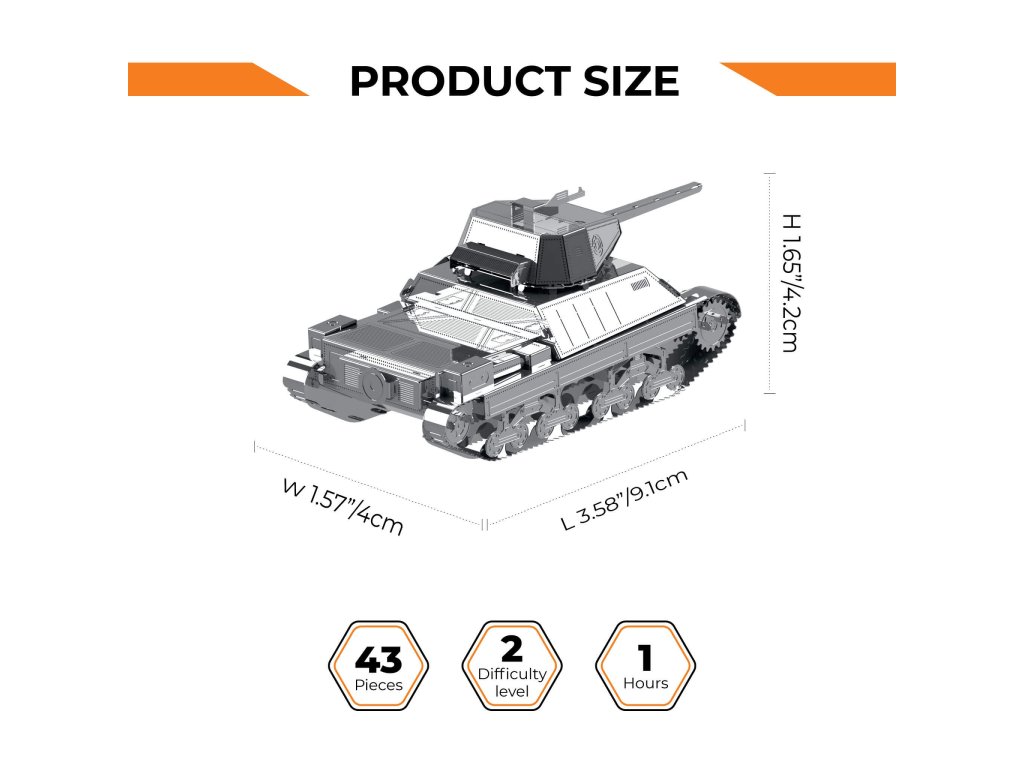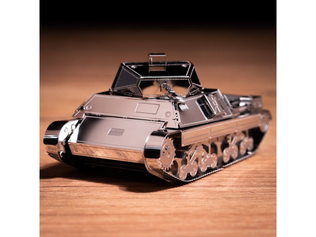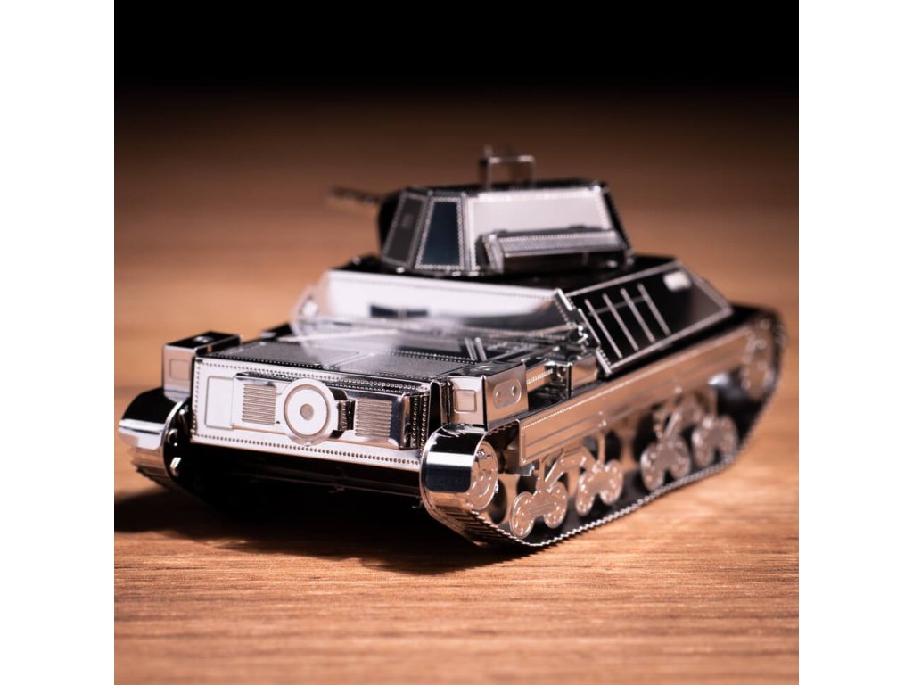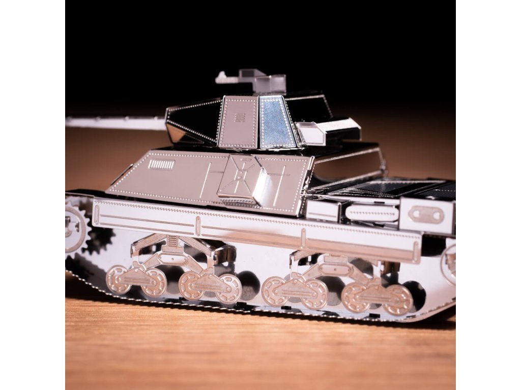 Stavebnice modelu z kovu. Vyrobeno z kvalitního leštěného ocelového plechu laserovým vypalováním a přesným obráběním. Vhodné pro mírně pokročilé a starší děti.