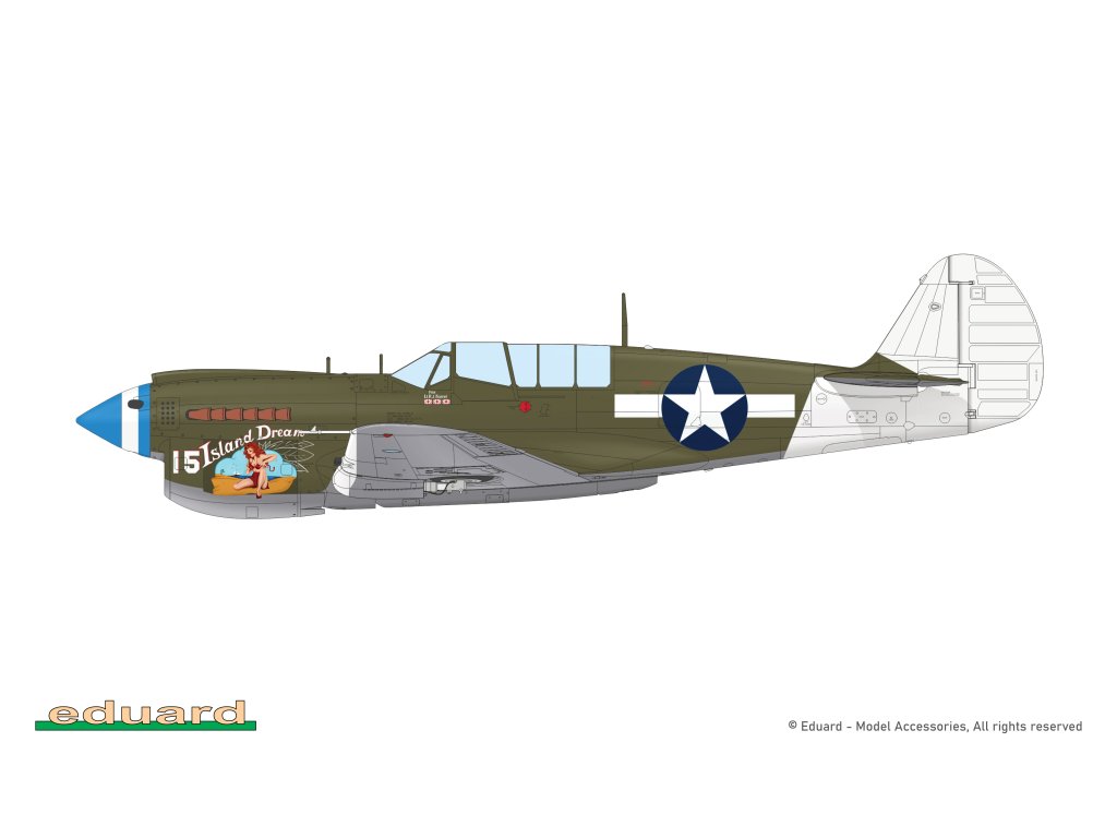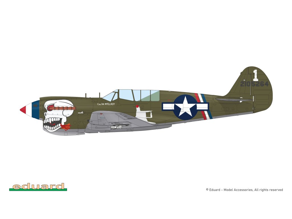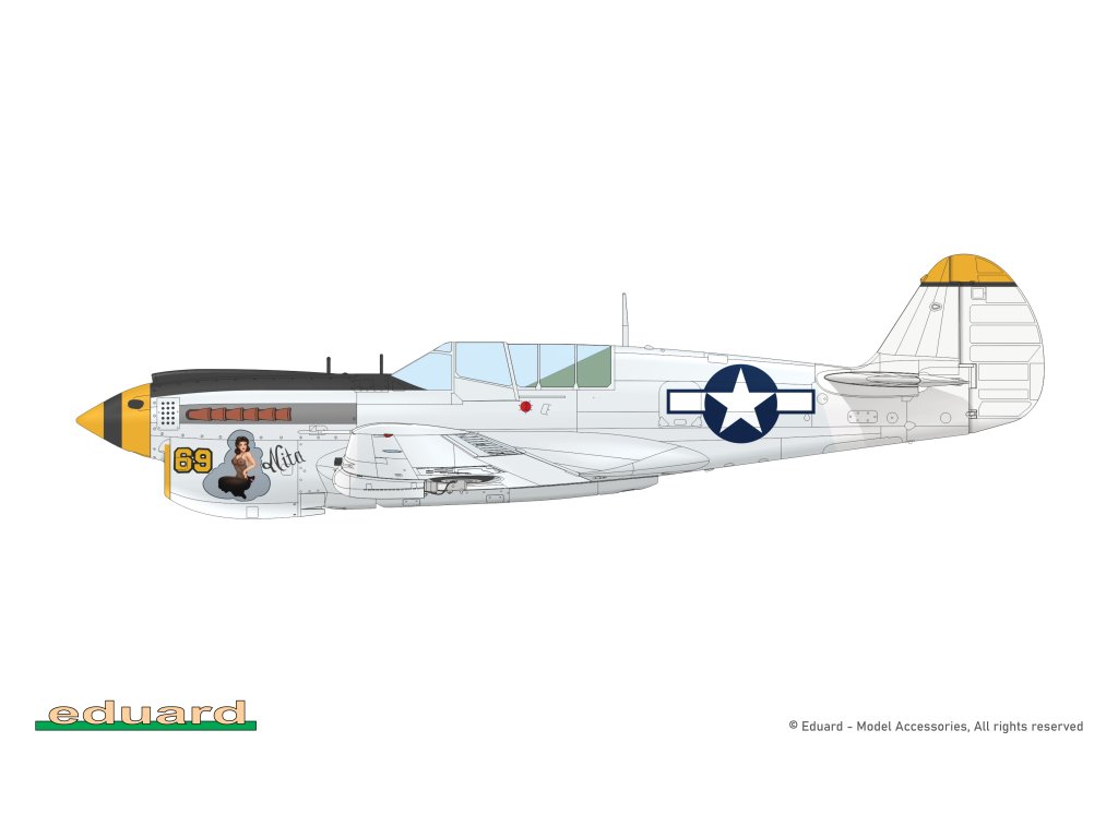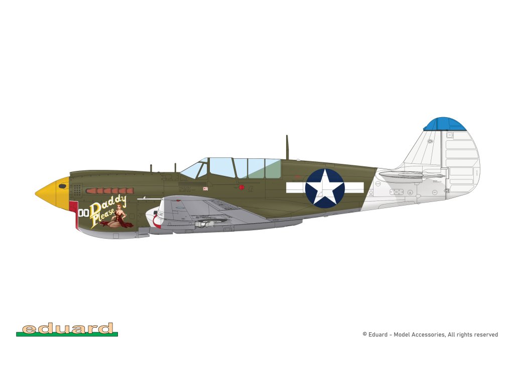 Stavebnice plastikového modelu amerického stíhacího letadla z druhé světové války. Součástí stavebnice jsou také 3D tištěné (resin) díly.