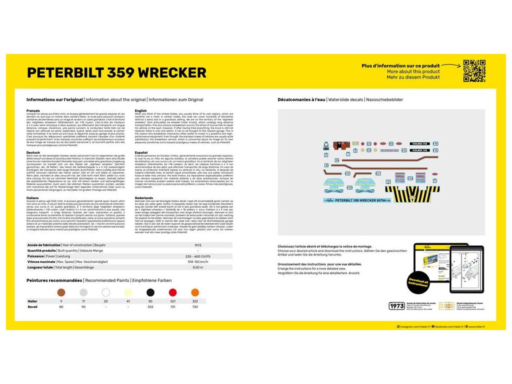 Stavebnice plastikového modelu amerického klasického tahače v odtahové verzi vyráběného od druhé poloviny 60. let.