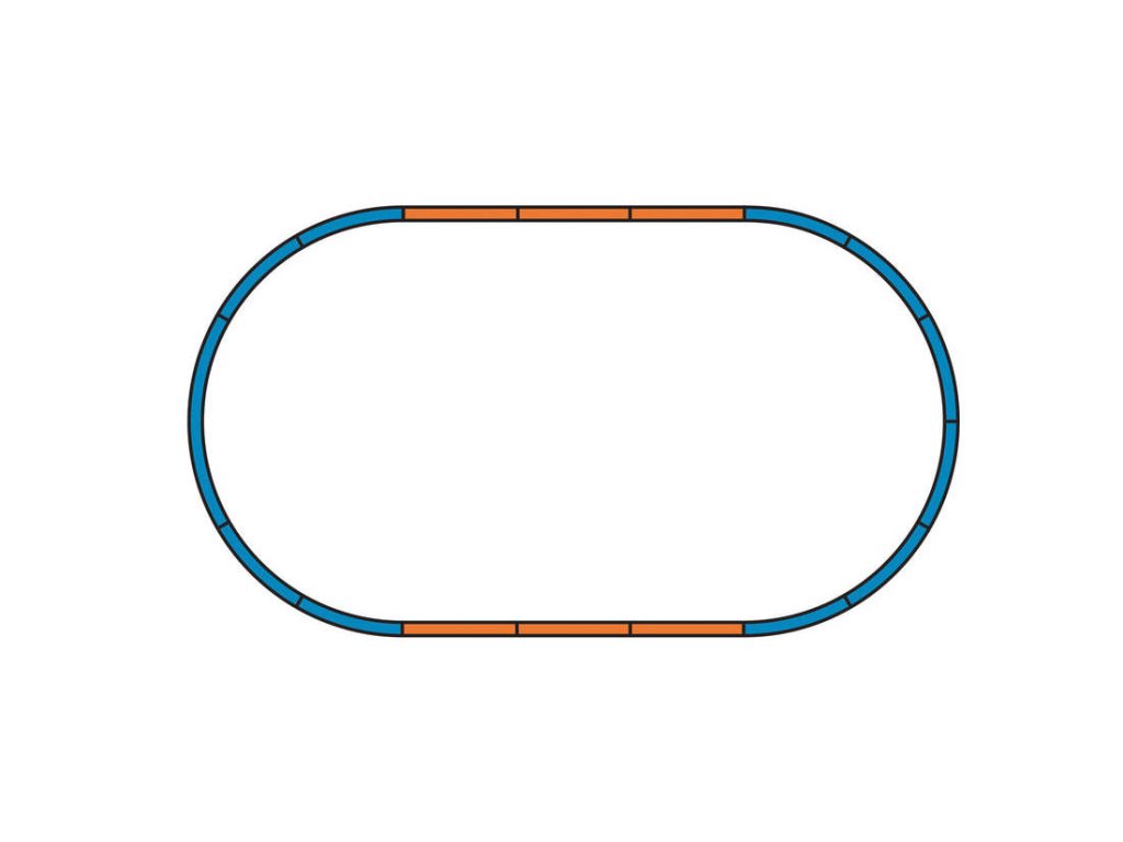 Startovací sada modelové železnice. Obsahuje vše potřebné pro sestavení jednoduchého kolejového okruhu a okamžitý provoz se spoustou zábavy. Kolejový okruh lze neomezeně rozšiřovat dokupováním jednotlivých kusů kolejí nebo rozšiřovacích kolejových sad.