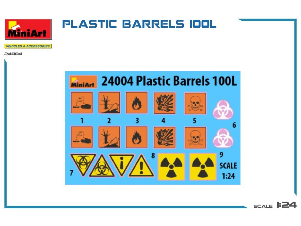 Stavebnice plastikového modelu sady plastových sudů určených jako doplněk do diorámy nebo modelu nákladního auta.