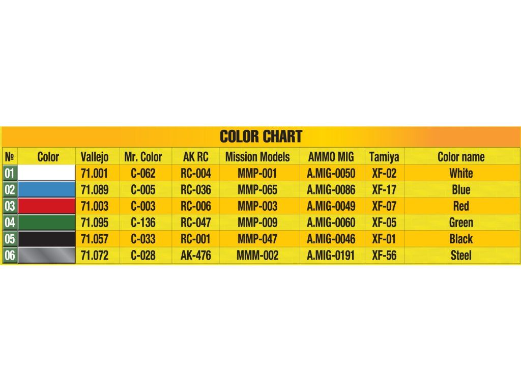 K sestavení modelu je třeba zakoupit: Lepidlo na plasty, barvy, štětce, modelářské nářadí. Dárkové sady / sady modelů mohou obsahovat také základní barvy, lepidlo a štětec.