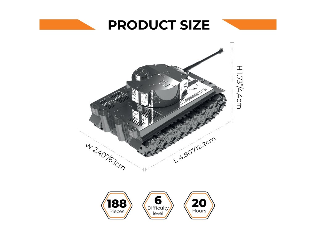 Stavebnice modelu z kovu. Vyrobeno z kvalitního leštěného ocelového plechu laserovým vypalováním a přesným obráběním. Vhodné pro mírně pokročilé a starší děti. Stavebnice obsahuje vyštipovací kleště, pilník, rukavice, čistící hadřík a sběratelské předměty jako odznak a nálepky.