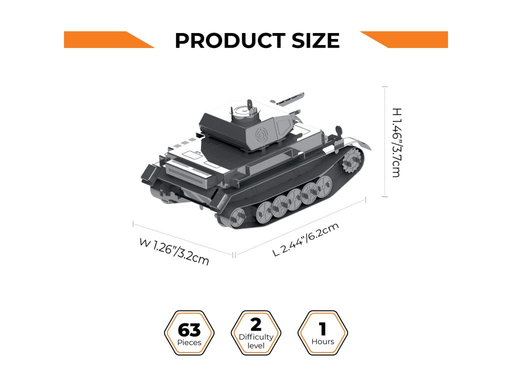 Stavebnice modelu z kovu. Vyrobeno z kvalitního leštěného ocelového plechu laserovým vypalováním a přesným obráběním. Vhodné pro mírně pokročilé a starší děti.