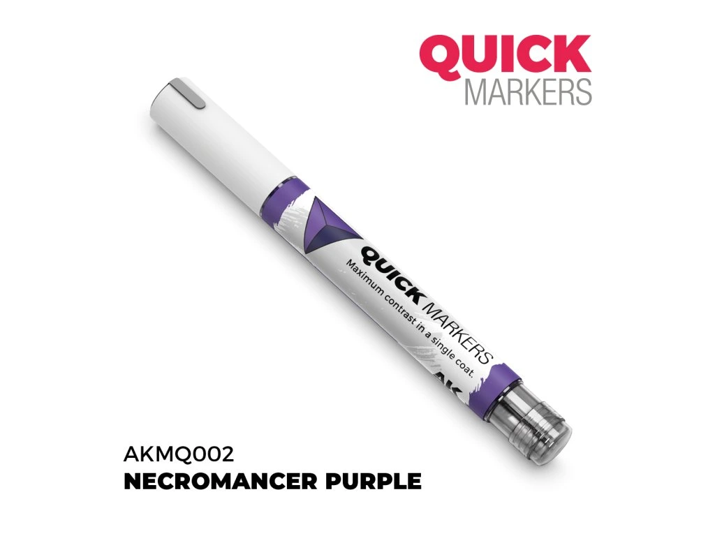 Quickmarkery jsou speciální akrylové barvy, které kombinují štětec a fixu v jednom. Obsahují barvu na vodově-pryskyřičné (resin) bázi, která redukuje množství kroků a technik, které je nutno provést při barvení figurek s tradičními akrylovými barvami (povrchová vrstva barvy, stíny, zvýrazňování) na jeden krok po nanesení základní vrstvy barvy (primeru). Quickmarkery poskytují dokonalou přilnavost k plastovým, pryskyřičným (resin), kovovým nebo dřevěným povrchům. Barvy se mohou jemně lišit intenzitou krytí, ale mohou být aplikovány také v několika vrstvách. Po zaschnutí jsou odolné vůči vodě, teplu, patinovacím přípravkům a lakům, takže můžete pracovat bez obav z odstranění nebo poškození povrchové vrstvy barvy. Quickmarkery se skvěle hodí pro malování figurek a plastových modelů. Umožňují vytváření jemných linek i barvení větších ploch modelu.
