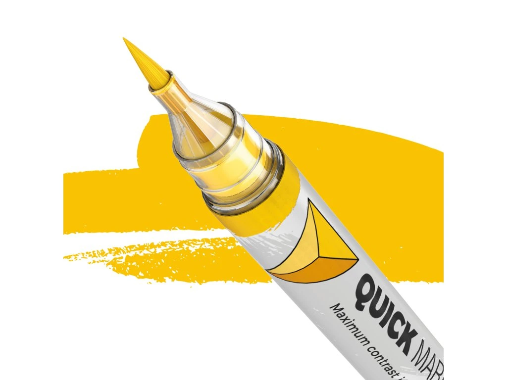 Quickmarkery jsou speciální akrylové barvy, které kombinují štětec a fixu v jednom. Obsahují barvu na vodově-pryskyřičné (resin) bázi, která redukuje množství kroků a technik, které je nutno provést při barvení figurek s tradičními akrylovými barvami (povrchová vrstva barvy, stíny, zvýrazňování) na jeden krok po nanesení základní vrstvy barvy (primeru). Quickmarkery poskytují dokonalou přilnavost k plastovým, pryskyřičným (resin), kovovým nebo dřevěným povrchům. Barvy se mohou jemně lišit intenzitou krytí, ale mohou být aplikovány také v několika vrstvách. Po zaschnutí jsou odolné vůči vodě, teplu, patinovacím přípravkům a lakům, takže můžete pracovat bez obav z odstranění nebo poškození povrchové vrstvy barvy. Quickmarkery se skvěle hodí pro malování figurek a plastových modelů. Umožňují vytváření jemných linek i barvení větších ploch modelu.