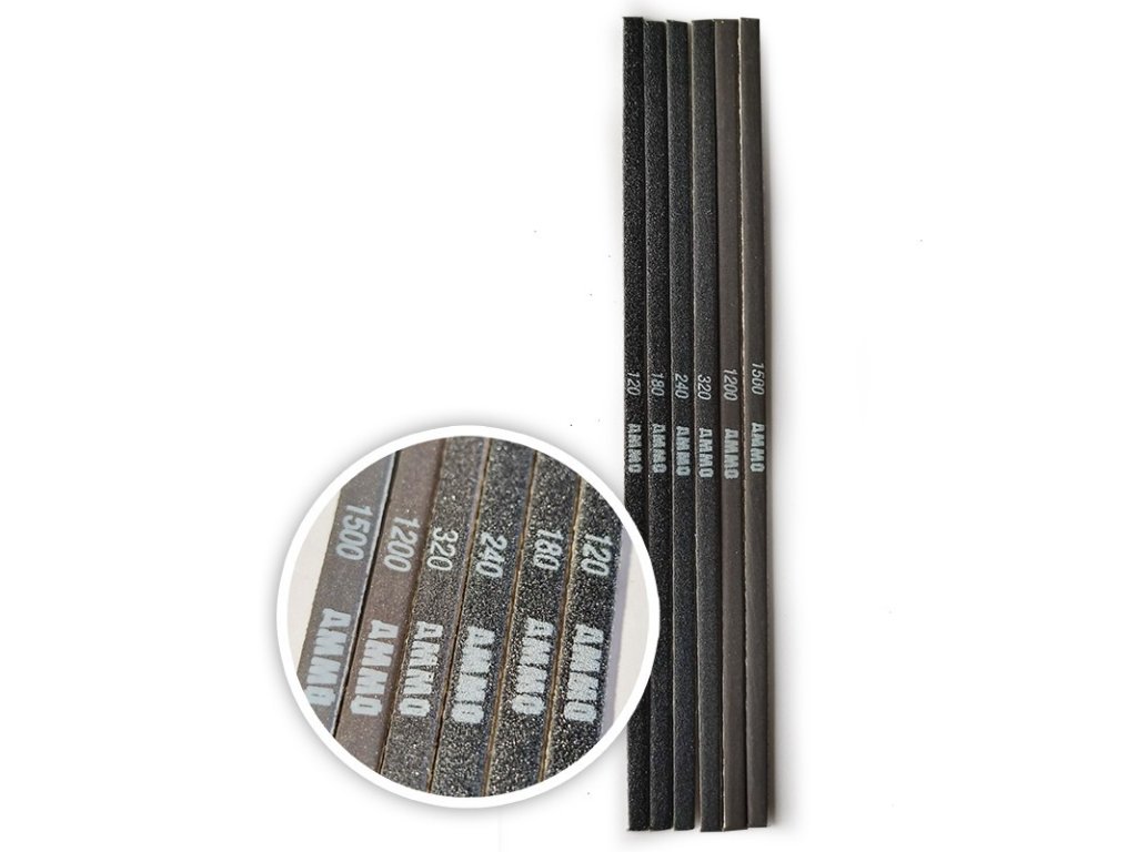 Balení obsahuje 6 brusných tyčinek o zrnitostech: 120/180/240/320/1200/1500.