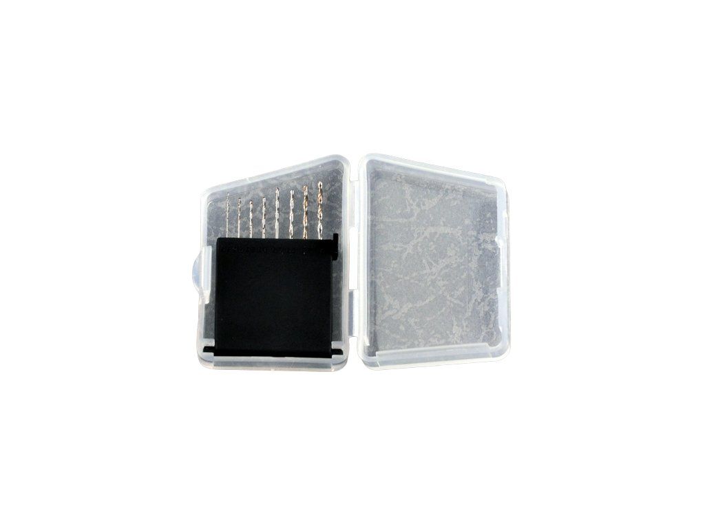 Sada modelářských/hobby vrtáků v plastovém obalu určeného k ochraně vrtáků před poškozením nebo ztrátou.Obsahuje 8 ks v rozměrech od 0,3 do 1,0mm