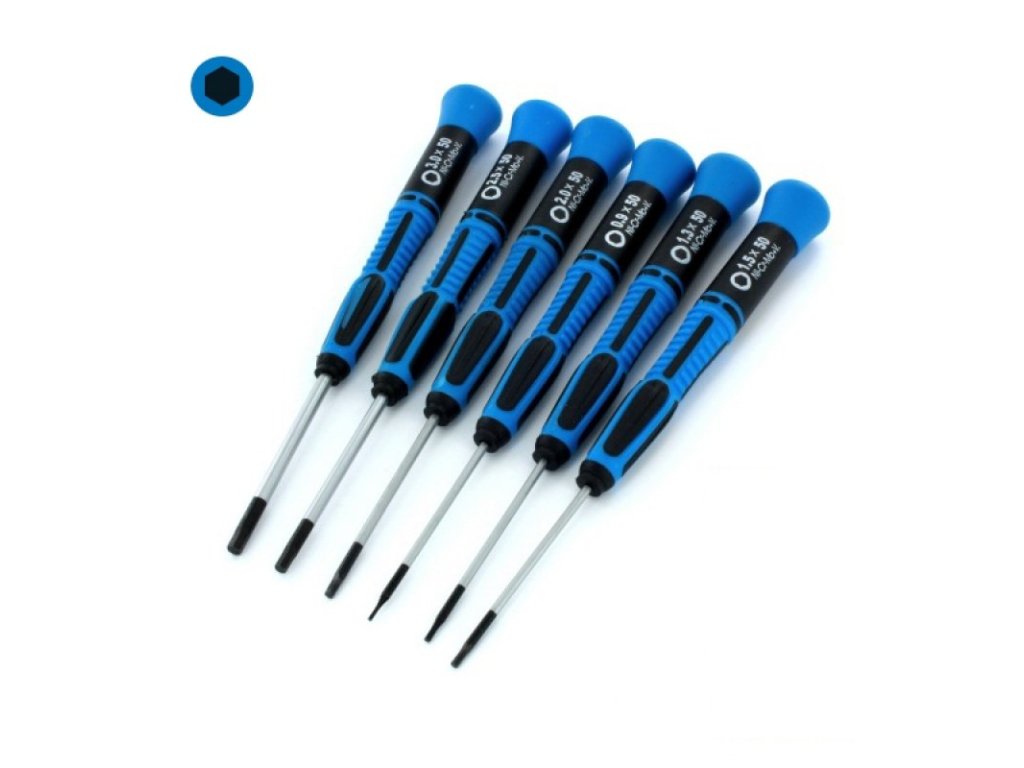 Sada obsahuje šroubováky o velikostech: 0.9, 1.3, 1.5, 2.0, 2.5, 3.0 x 50mm