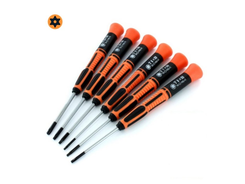 Sada šroubováků s hvězdicovou 6-hrannou hlavou Torx vyrobených z nickl-chrom-molybdenové oceli (SAE8660) + vanadiové oceli: