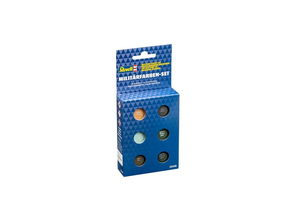 Sada syntetických barev Revell určená k nabarvení nebo nastříkání modelů vojenských letadel.