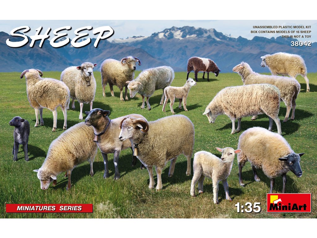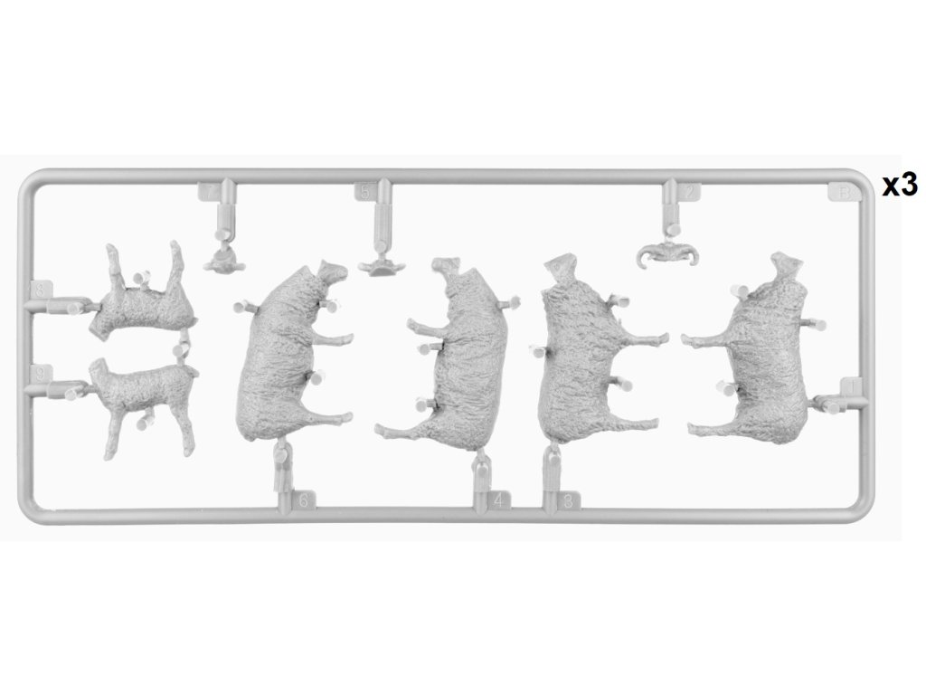 Stavebnice plastikového modelu sady figurek ovcí vhodných do diorámu. Součástí balení je 15 figurek.