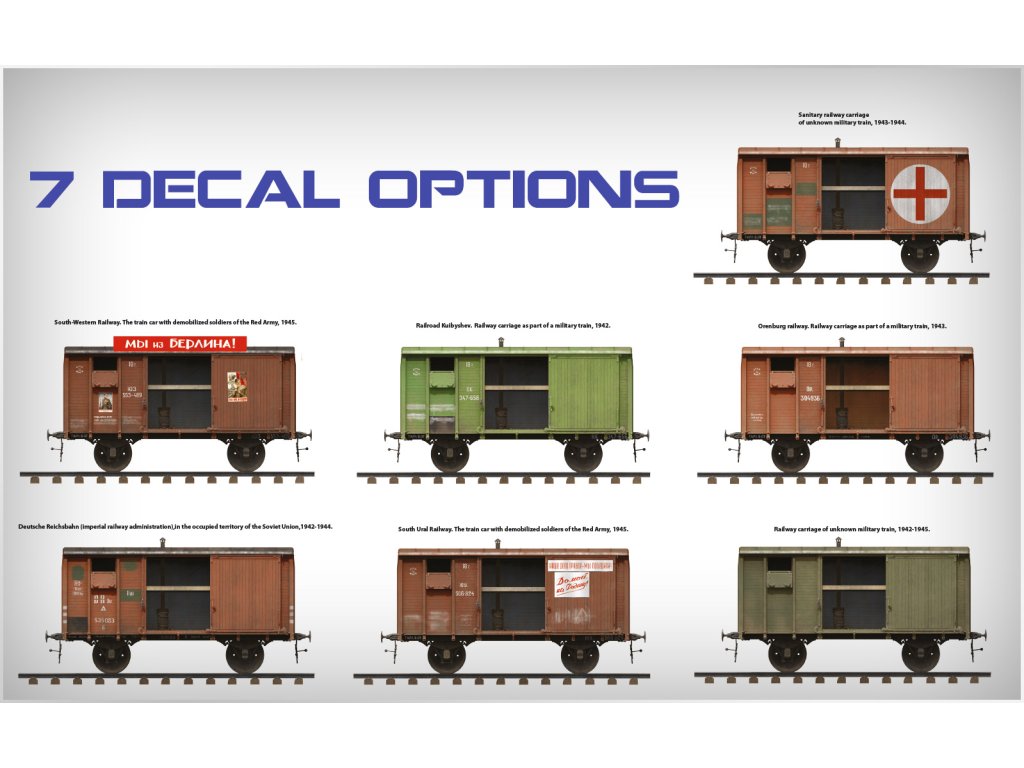 Stavebnice plastikového modelu sovětského vyhřívaného železničního vagónu používaného pro přepravu vojáků, ale i vězňů do gulagů.