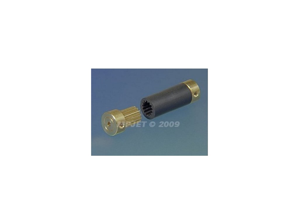 Trojdielna FLEXI spojka je určená na spojenie lodného hriadeľa s elektromotorom v prípade, keď je nutné eliminovať miernu nesúososť. Kompletná spojka sa skladá z 3 dielov - dvoch kovových unášačov z mosadze s vonkajším priemerom 12 mm a s otvormi s veľkosťou zodpovedajúcou hriadeľom a jedného elastického spojovacieho elementu.