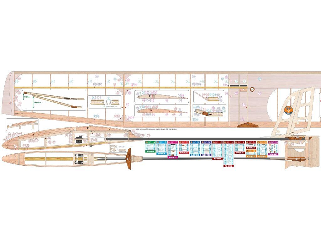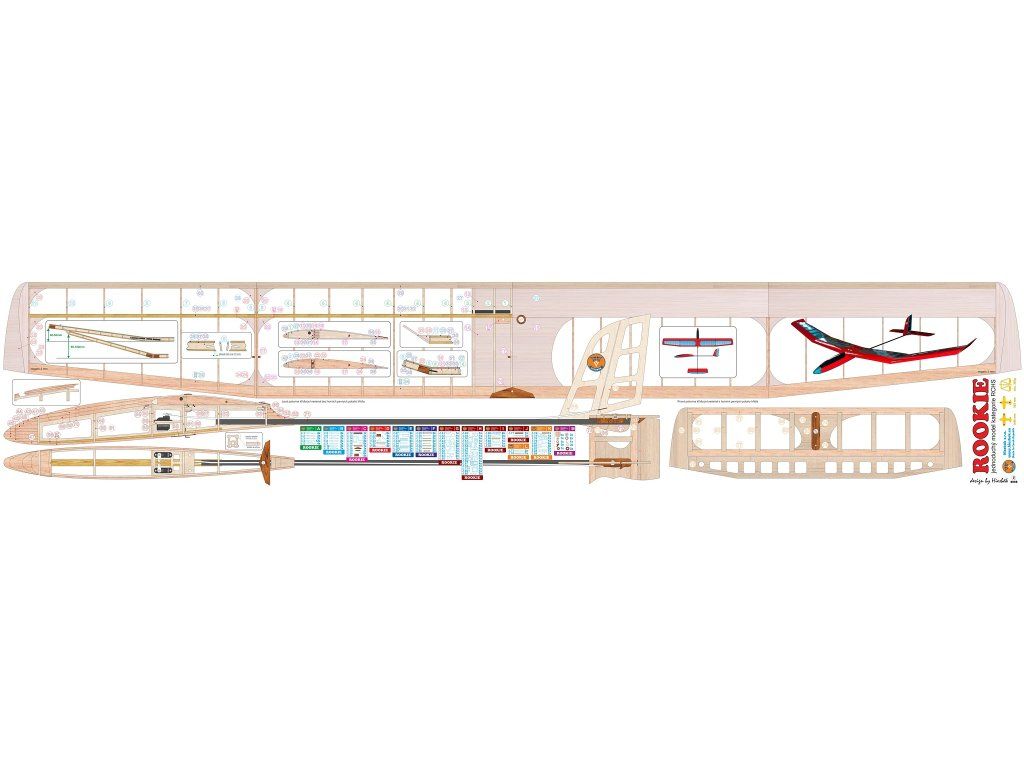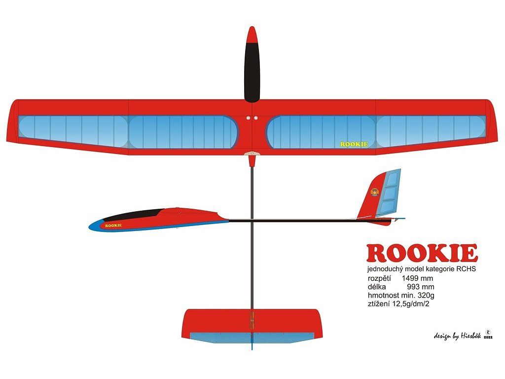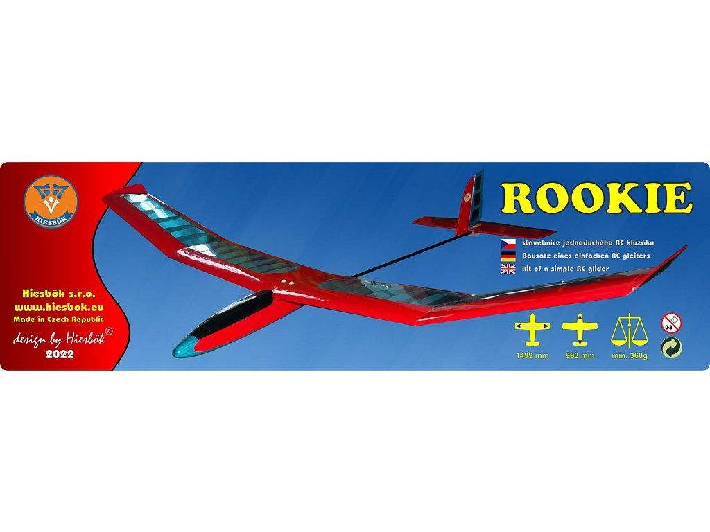 Rookie je jednoduchý školní kluzák vhodný pro létání v kategorii RCH/RCHS.Děti si na něm vyzkouší stavbu složitějšího velkého geometricky zkrouceného křídla, potahování křídla fólií a instalaci RC komponentů.Křídlo má profil AG35 a horní pevný potah přední části křídla.Model díky konstrukci nepadá do vývrtky, velmi dobře reaguje na termiku a má velmi dobrou stabilitu i v silnějším větru. Zvládá létání i na velmi malém prostoru.