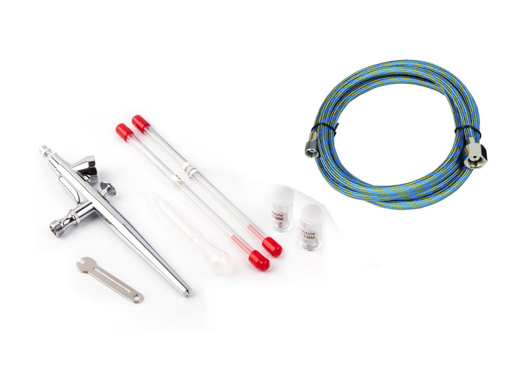Kvalitní celokovová stříkací pistole s dvojčinnou spouští, klasickou tryskou a gravitačním plněním. Specialitou této pistole je malý pro malé množství barvy, tedy pro rychlou a častou výměnu odstínu. Vhodná pro všestranné použití v modelářství (malování modelů), při umělecké práci (americká retuš – malování obrazů), vhodná pro nehtová studia (dekorování nehtů), vhodná pro dočasné tetování (body painting) a pro potravinářské práce (malování na dorty a koláče potravinářskými barvami).