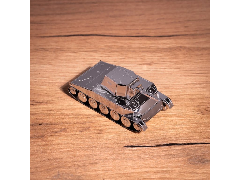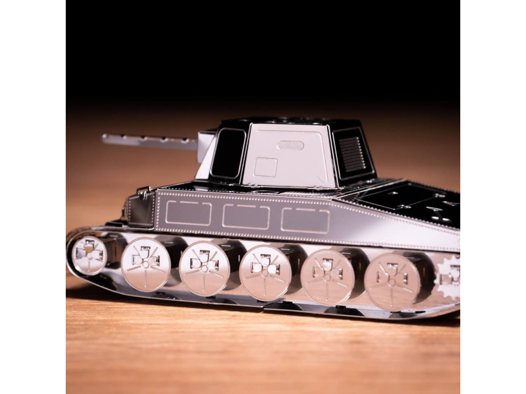 Stavebnice modelu z kovu. Vyrobeno z kvalitního leštěného ocelového plechu laserovým vypalováním a přesným obráběním. Vhodné pro mírně pokročilé a starší děti.