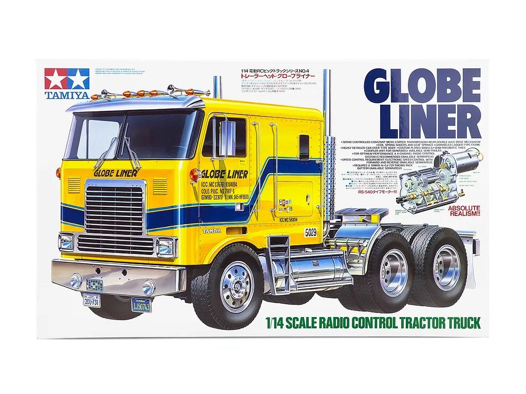 Náš test Globe Liner: Tak jako všechny stavebnice značky Tamiya, i tato jen potvrzuje dobrou pověst tohoto japonského výrobce. Po vybalení rozměrné krabice zůstanou na stole rámečky s plastovými díly, několik sáčků s přehledně tříděnými šrouby, ozubenými koly a ostatními drobnostmi. Stavební návod je totálně přehledný, každý šroub je zřetelně zobrazen v životní velikosti, každý jeden krok je velmi přehledně zobrazen. Tento model však patří k těm složitějším a proto jej doporučuji pokročilejším modelářům. Zvláště proto, že nejdokonalejší je postaven is kompletní elektronikou MFC-01 Tamiya 56511. Při dodržení návodu a systematickém postupu, postavíte tento model v rámci několika večerů. Nejvíce práce je obvykle s kvalitním nastříkáním maketové karoserie a s montáží elektroniky. Toto obvykle trvá mnohem déle, než stavba šasi. Ke stavebnici je třeba dokoupit RC soupravu podle toho, zda model postavíte v nejjednodušším provedení, nebo v tom nejsložitějším. V prvním případě stačí obyčejná pistolová RC souprava a jedno servo řízení. V druhém případě použijete-li i MFC, je lepší koupit pákovou nejméně 4-kanálovou soupravu. Já jsem svůj model postavil v té nejvíce vybavené verzi a použil jsem proto dvě voděodolná serva Carson 6kg a vysílač Carson Reflex 6k. Konstrukce šasi modelů tahačů Tamiya je v podstatě stejná ve všech typech, ať už je to King Hauler, nebo Scania. Základem šasi je rám tvořen dvěma nosníky spojenými několika příčníky. K rámu se připojují závěsy náprav, tlumiče, lůžka serv a nakonec převodovka s motorem. Všechny spoje jsou šroubovány a proto není problém pokud si model nejprve postavíte v nejjednodušším provedení a pokročilou elektroniku domontujete později. Vše lze pěkně rozebrat bez poškození. Jelikož já jsem do svého modelu namontoval i MFC-01 Tamiya (POZOR, kupuje se samostatně), mám v modelu všechna světla a zvuky naprosto realistické, včetně zvláště efektního zvuku motoru a klaksonu. Model má 3 rychlostní převodovku. To znamená, že lze ručně nebo dálkově zvolit jeden ze tří převodových poměrů a tím výrazně změnit točivý moment na nápravách, případně rozsah rychlostí podle velikosti nákladu. Prostor pro baterii je uvnitř kabiny, přístupný skrz velké zadní dveře. Je to model, se kterým lze běžně jezdit venku, ale pozor, MFC-01 není vodotěsná. Naštěstí na tohle je poměrně snadná pomoc, stačí opatrně otevřít schránku MFC, a nastříkat elektroniku přípravkem Nanoprotech. Servo a přijímač je třeba hned na začátku vybírat s požadavkem voděodolnosti nebo i vodotěsnosti. Když to shrnu, koupí této stavebnice dostanete několik hodin perfektní zábavy ukončené radostí z atraktivního modelu výborného pro nadšence kamiony. Pokud si k němu dokoupíte ještě některý z široké nabídky návěsů, budete mít doma takovou atrakci, jakou se budete rádi pyšnit před každou návštěvou. Ostatně, na videu se o výkonech modelů tahačů Tamiya můžete sami přesvědčit.