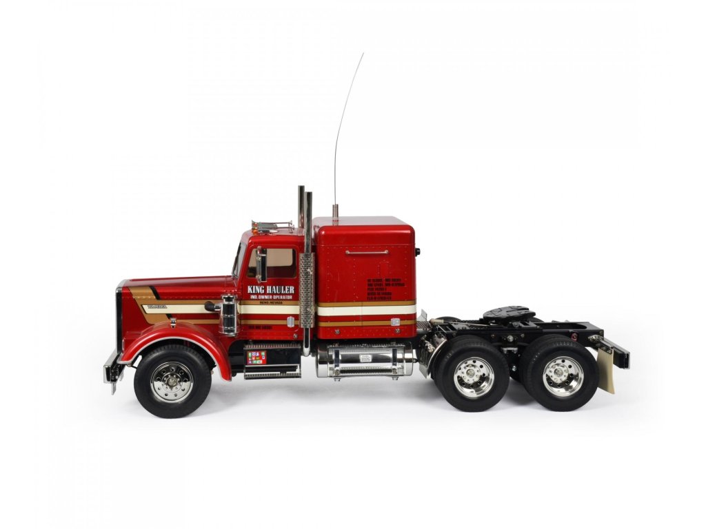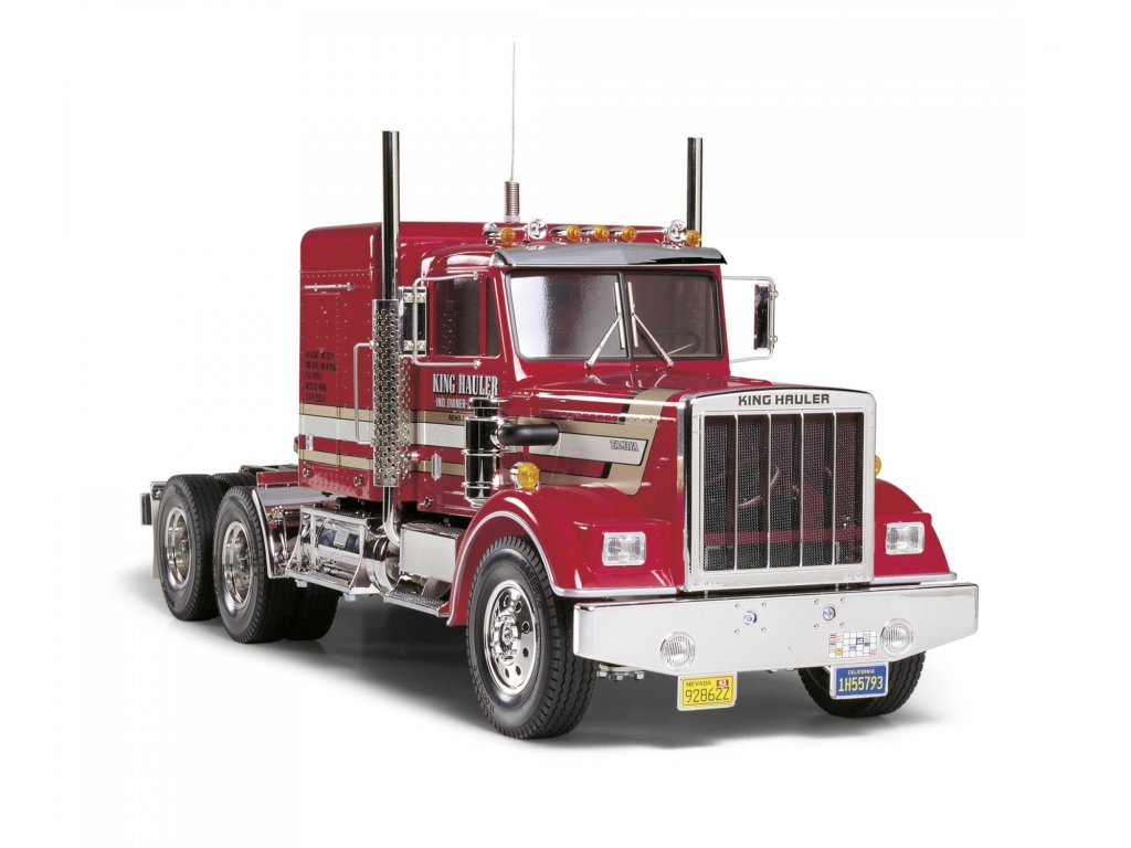 Náš test King Hauler: Tak jako všechny stavebnice značky Tamiya, i tato jen potvrzuje dobrou pověst tohoto japonského výrobce. Po vybalení rozměrné krabice zůstanou na stole rámečky s plastovými díly, několik sáčků s přehledně tříděnými šrouby, ozubenými koly a ostatními drobnostmi. Stavební návod je totálně přehledný, každý šroub je zřetelně zobrazen v životní velikosti, každý jeden krok je velmi přehledně zobrazen. Tento model však patří k těm složitějším a proto jej doporučuji pokročilejším modelářům. Zvláště proto, že nejdokonalejší je postaven is kompletní elektronikou MFC-01 Tamiya 56511. Při dodržení návodu a systematickém postupu, postavíte tento model v rámci několika večerů. Nejvíce práce je obvykle s kvalitním nastříkáním maketové karoserie a s montáží elektroniky. Toto obvykle trvá mnohem déle, než stavba šasi. Ke stavebnici je třeba dokoupit RC soupravu podle toho, zda model postavíte v nejjednodušším provedení, nebo v tom nejsložitějším. V prvním případě stačí obyčejná pistolová RC souprava a jedno servo řízení. V druhém případě použijete-li i MFC, je lepší koupit pákovou nejméně 4-kanálovou soupravu. Já jsem svůj model postavil v té nejvíce vybavené verzi a použil jsem proto dvě voděodolná serva Carson 6kg a vysílač Carson Reflex 6k. Konstrukce šasi modelů tahačů Tamiya je v podstatě stejná ve všech typech, ať už je to King Hauler, nebo Scania. Základem šasi je rám tvořen dvěma nosníky spojenými několika příčníky. K rámu se připojují závěsy náprav, tlumiče, lůžka serv a nakonec převodovka s motorem. Všechny spoje jsou šroubovány a proto není problém pokud si model nejprve postavíte v nejjednodušším provedení a pokročilou elektroniku domontujete později. Vše lze pěkně rozebrat bez poškození. Jelikož já jsem do svého modelu namontoval i MFC-01 Tamiya (POZOR, kupuje se samostatně), mám v modelu všechna světla a zvuky naprosto realistické, včetně zvláště efektního zvuku motoru a klaksonu. Model má 3 rychlostní převodovku. To znamená, že lze ručně nebo dálkově zvolit jeden ze tří převodových poměrů a tím výrazně změnit točivý moment na nápravách, případně rozsah rychlostí podle velikosti nákladu. Prostor pro baterii je uvnitř kabiny, přístupný skrz velké zadní dveře. Je to model, se kterým lze běžně jezdit venku, ale pozor, MFC-01 není vodotěsná. Naštěstí na tohle je poměrně snadná pomoc, stačí opatrně otevřít schránku MFC, a nastříkat elektroniku přípravkem Nanoprotech. Servo a přijímač je třeba hned na začátku vybírat s požadavkem voděodolnosti nebo i vodotěsnosti. Když to shrnu, koupí této stavebnice dostanete několik hodin perfektní zábavy ukončené radostí z atraktivního modelu výborného pro nadšence kamiony. Pokud si k němu dokoupíte ještě některý z široké nabídky návěsů, budete mít doma takovou atrakci, jakou se budete rádi pyšnit před každou návštěvou. Ostatně, na videu se o výkonech modelů tahačů Tamiya můžete sami přesvědčit.