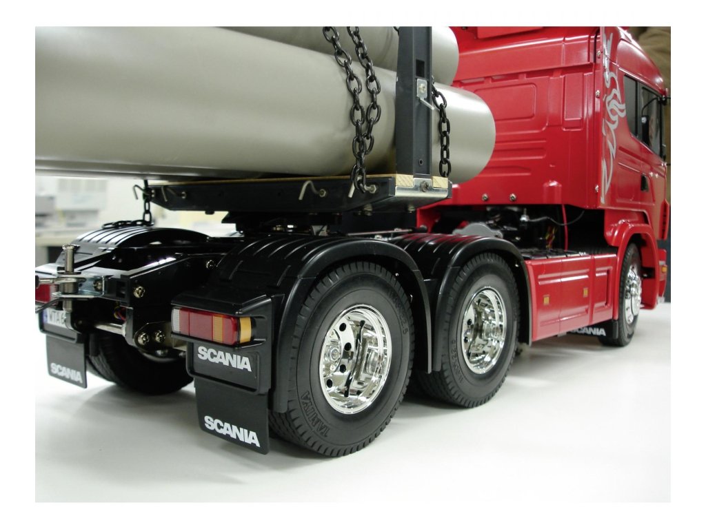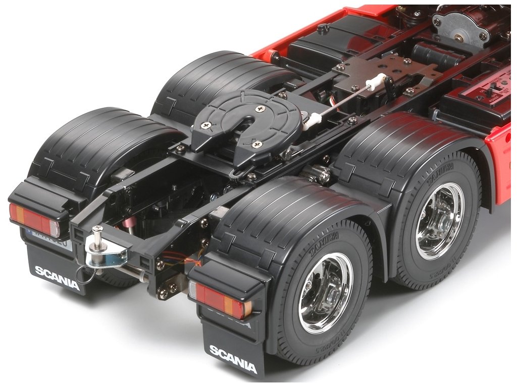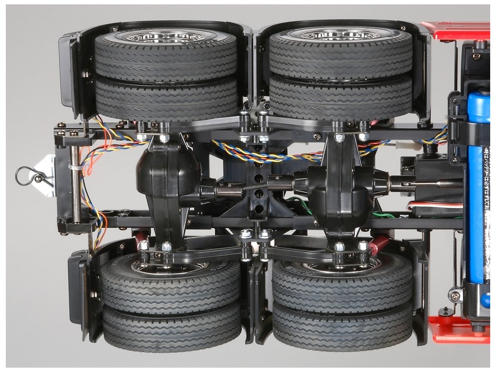 Šasi Tamiya v této stavebnici se vyznačuje vysokou modelovostí konstrukce. Pohon obou zadních náprav je zajištěn přes 3rychlostní převodovku kardanovými hřídeli a diferenciály. Jednu ze tří rychlostí (převodových poměrů) lze zvolit ručně pomocí mechanických zarážek (nebo dálkově přes RC vysílač a servo řazení). Tento model má velice atraktivní vzhled, výborný výkon a jízdní vlastnosti. Model je již v základním provedení schopen utáhnout náklad 15 – 20 kg!