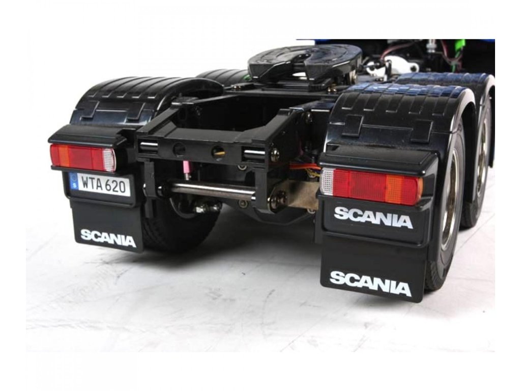 Náš test Scania R620: Tak jako všechny stavebnice značky Tamiya, i tato jen potvrzuje dobrou pověst tohoto japonského výrobce. Po vybalení rozměrné krabice zůstanou na stole rámečky s plastovými díly, několik sáčků s přehledně tříděnými šrouby, ozubenými koly a ostatními drobnostmi. Stavební návod je totálně přehledný, každý šroub je zřetelně zobrazen v životní velikosti, každý jeden krok je velmi přehledně zobrazen. Tento model však patří k těm složitějším a proto jej doporučuji pokročilejším modelářům. Zvláště proto, že nejdokonalejší je postaven is kompletní elektronikou MFC-03 Tamiya 56523 (ale lze samozřejmě rovněž použít MFC-01). Při dodržení návodu a systematickém postupu postavíte tento model v rámci několika večerů. Nejvíce práce je obvykle s kvalitním nastříkáním maketové karoserie a s montáží elektroniky. Toto obvykle trvá mnohem déle, než stavba šasi. Ke stavebnici je třeba dokoupit RC soupravu podle toho, zda model postavíte v nejjednodušším provedení, nebo v tom nejsložitějším. V prvním případě stačí obyčejná pistolová RC souprava a jedno servo řízení. V druhém případě použijete-li i MFC, je lepší koupit pákovou nejméně 4-kanálovou soupravu. Já jsem svůj model postavil v té nejvíce vybavené verzi a použil jsem proto dvě voděodolná serva Carson 6kg a vysílač Carson Reflex 6k. Konstrukce šasi modelů tahačů Tamiya je v podstatě stejná ve všech typech, ať už je to King Hauler, nebo Scania. Základem šasi je rám tvořen dvěma nosníky spojenými několika příčníky. K rámu se připojují závěsy náprav, tlumiče, lůžka serv a nakonec převodovka s motorem. Všechny spoje jsou šroubovány a proto není problém pokud si model nejprve postavíte v nejjednodušším provedení a pokročilou elektroniku domontujete později. Vše lze pěkně rozebrat bez poškození. Jelikož já jsem do svého modelu namontoval i MFC-01 Tamiya (POZOR, kupuje se samostatně), mám v modelu všechna světla a zvuky naprosto realistické, včetně zvláště efektního zvuku motoru a klaksonu. Model má 3 rychlostní převodovku. To znamená, že lze ručně nebo dálkově zvolit jeden ze tří převodových poměrů a tím výrazně změnit točivý moment na nápravách, případně rozsah rychlostí podle velikosti nákladu. Prostor pro baterii je ze spodní strany šasi v dobře přístupné schránce. Je to model, se kterým lze běžně jezdit venku, ale pozor, MFC-03 (MFC-01) není vodotěsná. Naštěstí na tohle je poměrně snadná pomoc, stačí opatrně otevřít schránku MFC, a nastříkat elektroniku přípravkem Nanoprotech. Servo a přijímač je třeba hned na začátku vybírat s požadavkem voděodolnosti nebo i vodotěsnosti. Když to shrnu, koupí této stavebnice dostanete několik hodin perfektní zábavy ukončené radostí z atraktivního modelu výborného pro nadšence kamiony. Pokud si k němu dokoupíte ještě některý z široké nabídky návěsů, budete mít doma takovou atrakci, jakou se budete rádi pyšnit před každou návštěvou. Ostatně, na videu se o výkonech modelů tahačů Tamiya můžete sami přesvědčit.