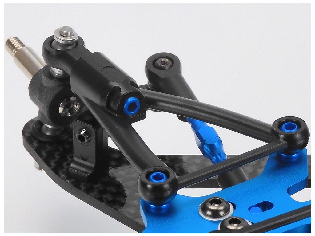 Přední spodní ramena zavěšení kol z uhlíkových vláken o tloušťce 2,5 mm mají dvě upevňovací polohy (3 mm na každou stranu) pro nastavení jejich šířky a připevnění kol s různým odsazením.