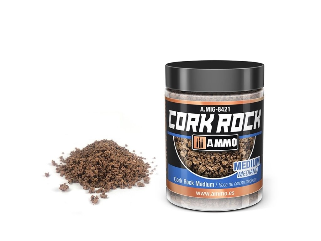 Vysokokvalitný korkový granulát v prírodnej farbe na znázornenie kameňov a sutín na rôznych modelovacích plochách. K dispozícii v troch rôznych veľkostiach alebo v kombinácii troch veľkostí, aby lepšie vyhovoval potrebám každého modelára. Pripravené na použitie priamo z balenia. Drvené korkové kúsky možno upevniť pomocou všetkých druhov lepidiel, vrátane akrylových aj kyanoakrylátových lepidiel.