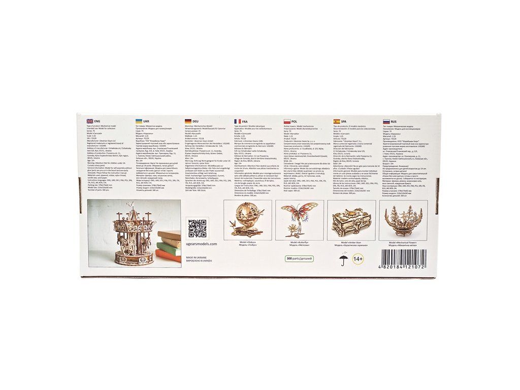 Dřevěné stavebnice mechanických modelů UGEARS jsou určeny pro děti i dospělé. Všechny díly jsou precizně vyřezány přesnou laserovou technologií z kvalitní překližky. Přesnost dílů zaručuje pohodlné sestavení i složitějších typů modelů. Skoro všechny modely UGEARS jsou nějakým způsobem funkční, ať už ve formě pohyblivých částí, nebo díky pryžovému pohonu. Modely jsou opakovaně rozebíratelné, pro sestavení se nepoužívá lepidlo.