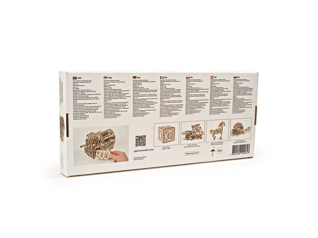Dřevěné stavebnice mechanických modelů UGEARS jsou určeny pro děti i dospělé. Všechny díly jsou precizně vyřezány přesnou laserovou technologií z kvalitní překližky. Přesnost dílů zaručuje pohodlné sestavení i složitějších typů modelů. Skoro všechny modely UGEARS jsou nějakým způsobem funkční, ať už ve formě pohyblivých částí, nebo díky pryžovému pohonu. Modely jsou opakovaně rozebíratelné, pro sestavení se nepoužívá lepidlo.