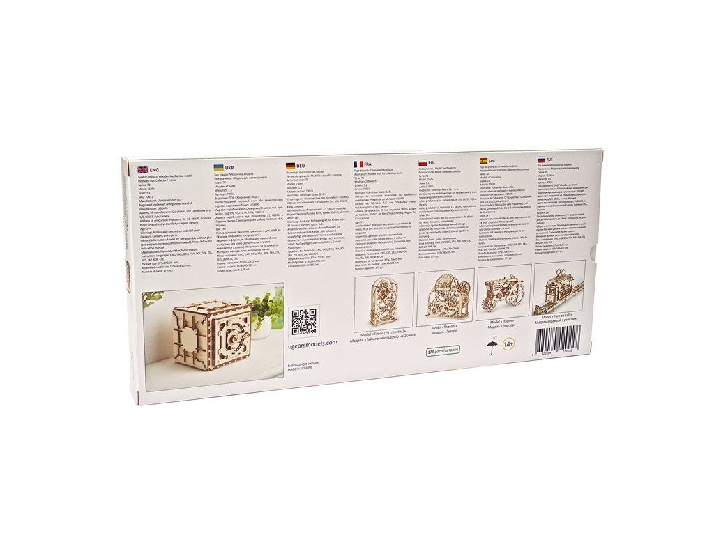 Dřevěné stavebnice mechanických modelů UGEARS jsou určeny pro děti i dospělé. Všechny díly jsou precizně vyřezány přesnou laserovou technologií z kvalitní překližky. Přesnost dílů zaručuje pohodlné sestavení i složitějších typů modelů. Skoro všechny modely UGEARS jsou nějakým způsobem funkční, ať už ve formě pohyblivých částí, nebo díky pryžovému pohonu. Modely jsou opakovaně rozebíratelné, pro sestavení se nepoužívá lepidlo.
