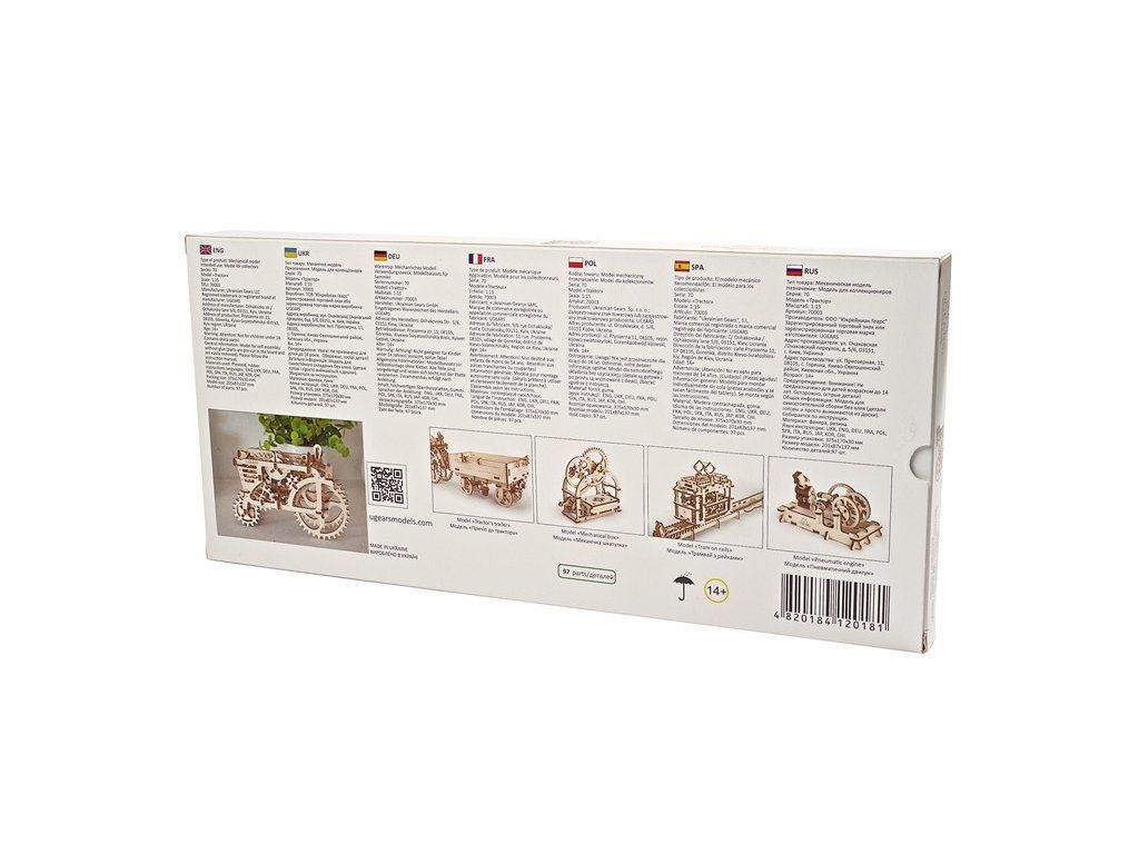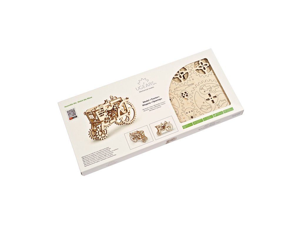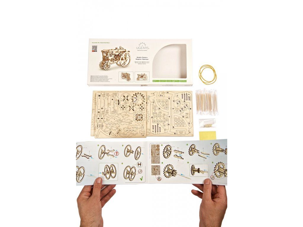 Dřevěné stavebnice mechanických modelů UGEARS jsou určeny pro děti i dospělé. Všechny díly jsou precizně vyřezány přesnou laserovou technologií z kvalitní překližky. Přesnost dílů zaručuje pohodlné sestavení i složitějších typů modelů. Skoro všechny modely UGEARS jsou nějakým způsobem funkční, ať už ve formě pohyblivých částí, nebo díky pryžovému pohonu. Modely jsou opakovaně rozebíratelné, pro sestavení se nepoužívá lepidlo.