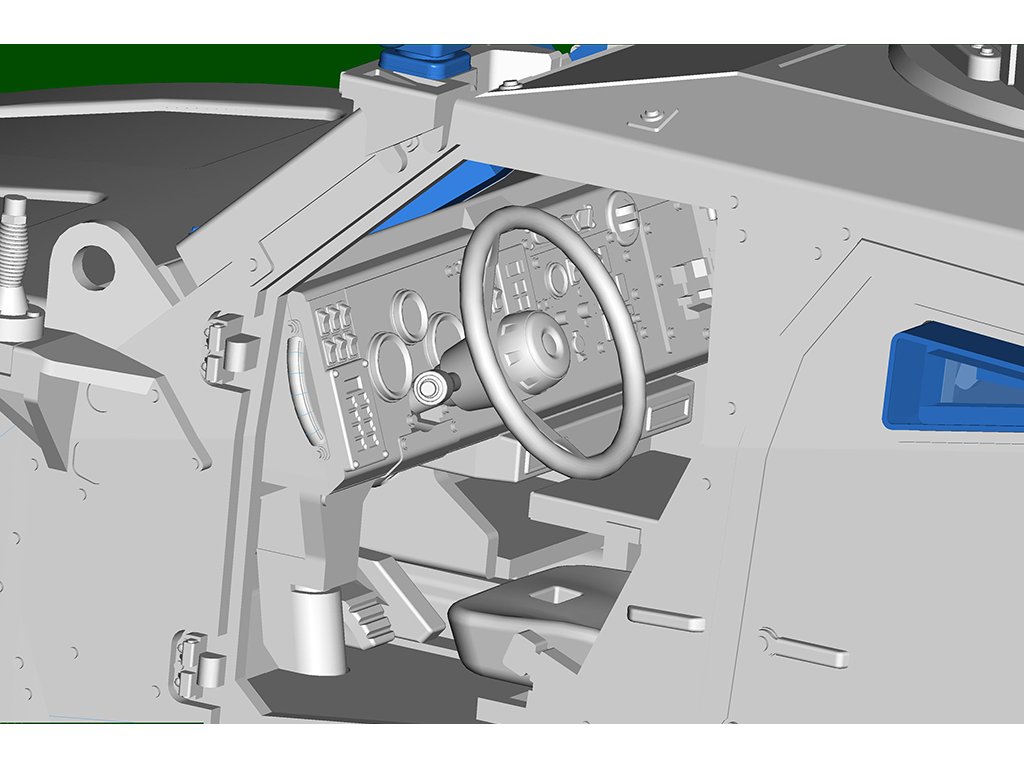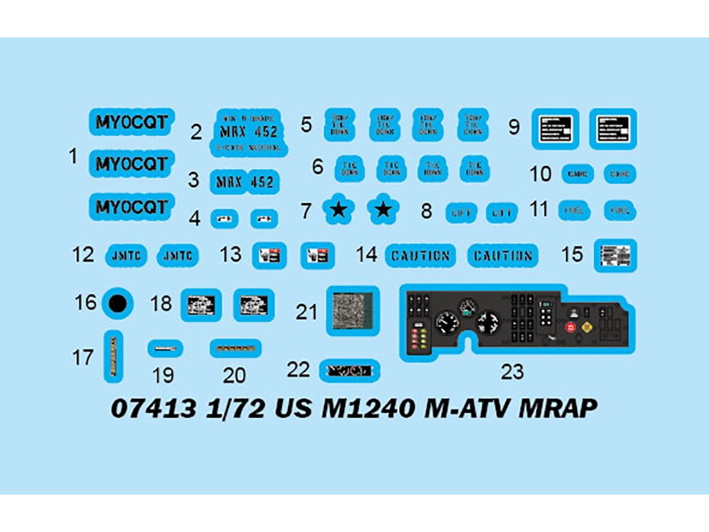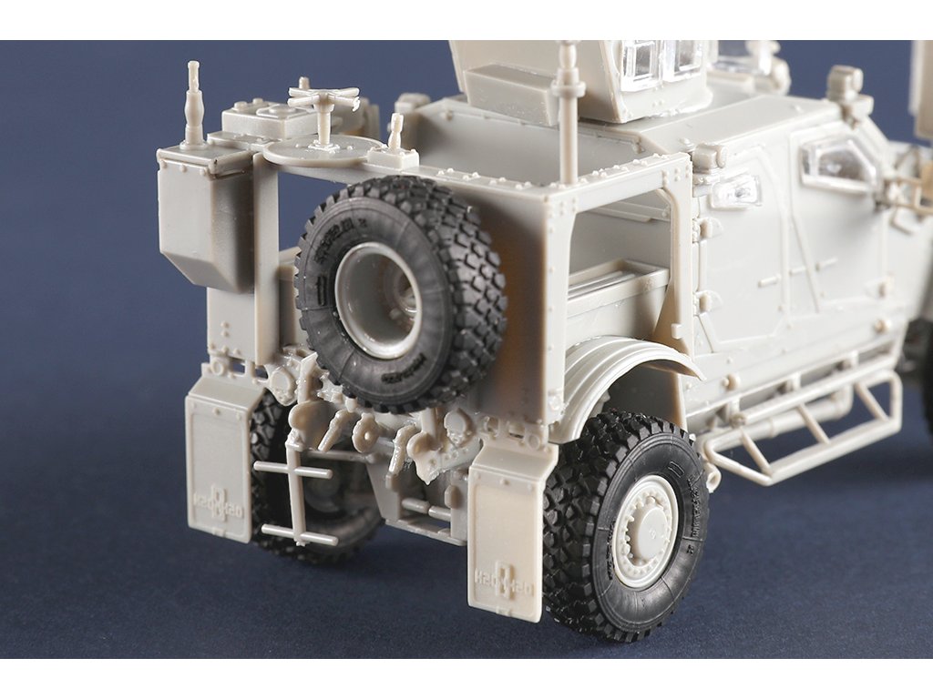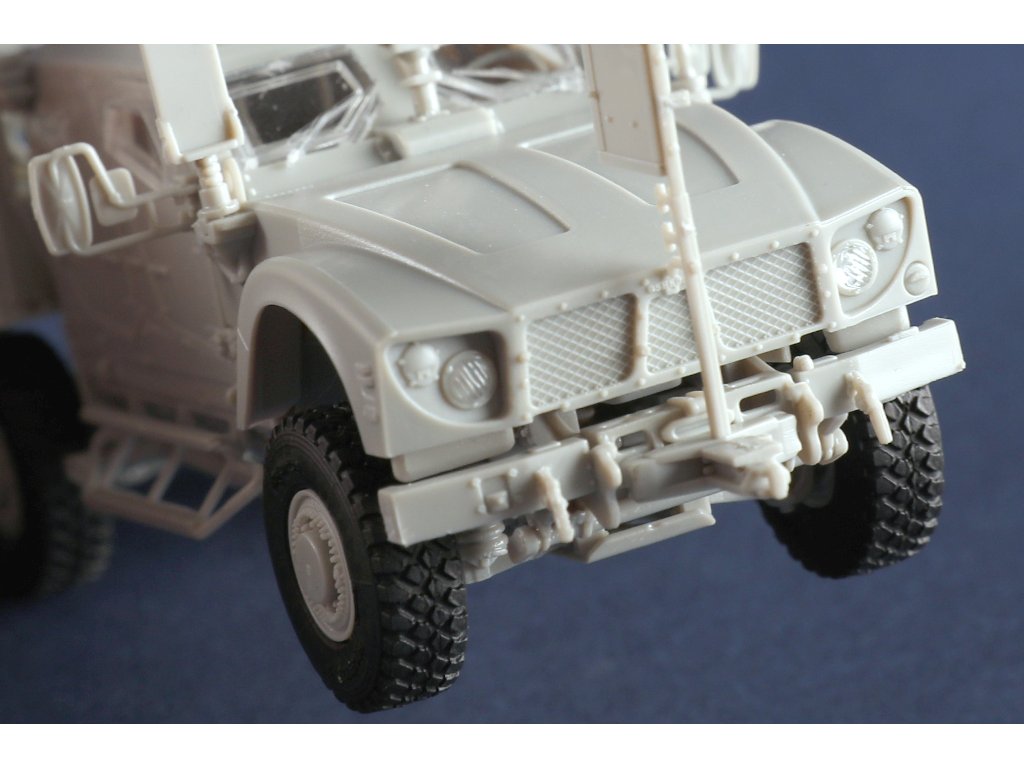 Stavebnice plastikového modelu amerického obrněného vozidla odolněného vůči minám používaného americkou armádou v současnosti.