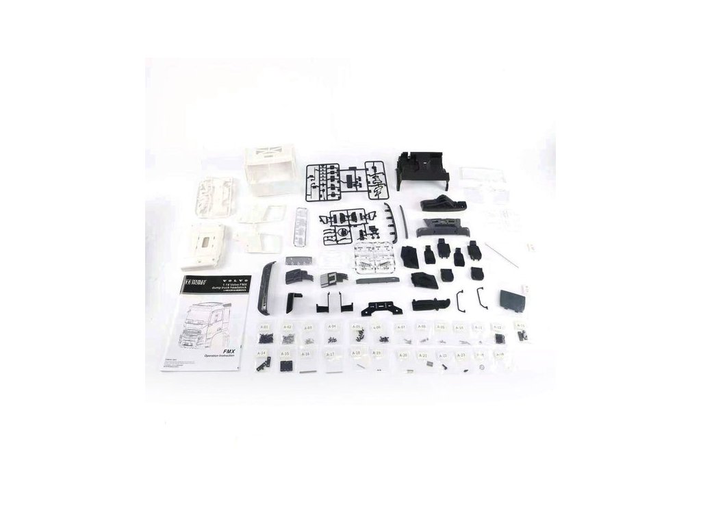 Detailní plastiková stavebnice kabiny sklápěče Volvo. Obsahuje díly pro stavbu interiéru, chromové díly, šrouby apod. Vhodné pro použití pro trucky Tamia v měřítku 1/14.