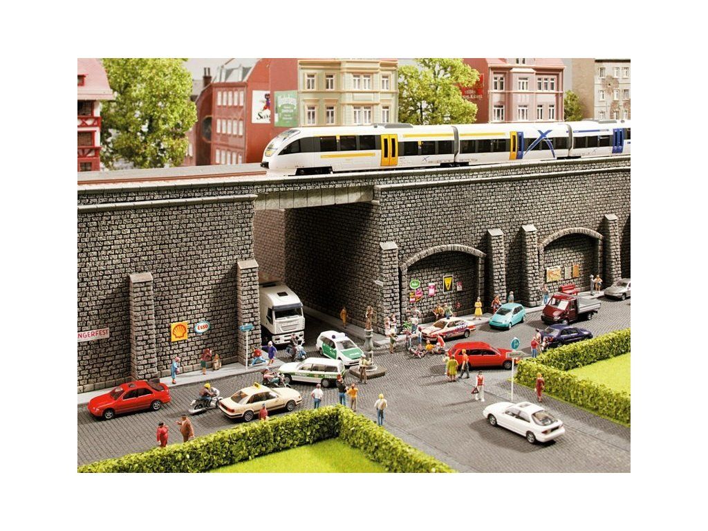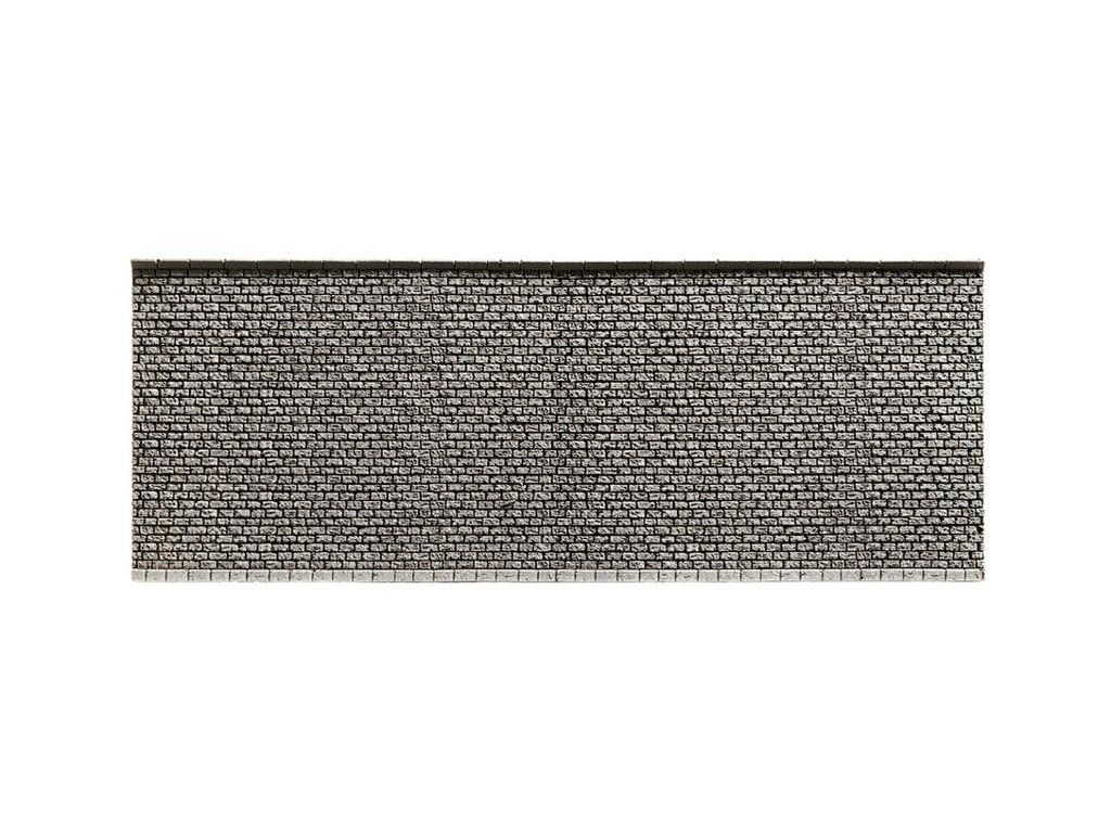 Opěrná zeď vhodná do diorámy nebo vláčkové krajinky. Materiál umožňuje řezání, broušení, po nahřátí horkovzdušnou pistolí lze ohýbat a tvarovat dle požadavků na terénní umístění.